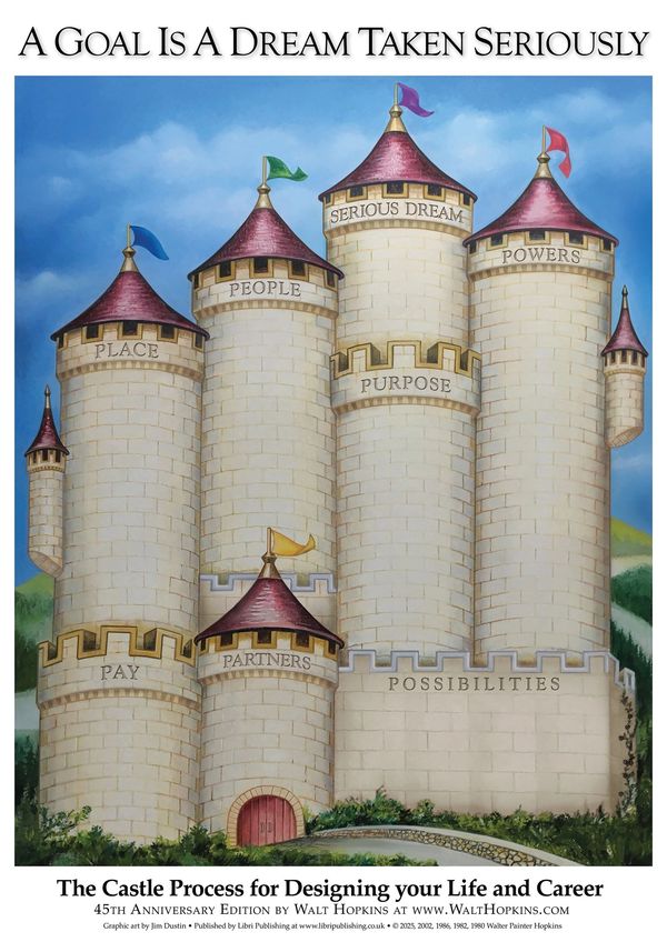 "I like the wonderful double image of castles. A castle is fantastic, dream-like, soaring upward AND a castle is also grounded on rock, solid as forever. That's why I see castles as a visual symbol of one of the wisest things I've ever said: A goal is a dream taken seriously." - Walt Hopkins, originator of the Castle Approach to Life and Career Design.